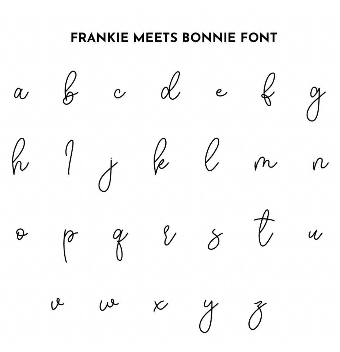 Font: The custom name will appear in lowercase letters as per the signature Frankie meets Bonnie font.