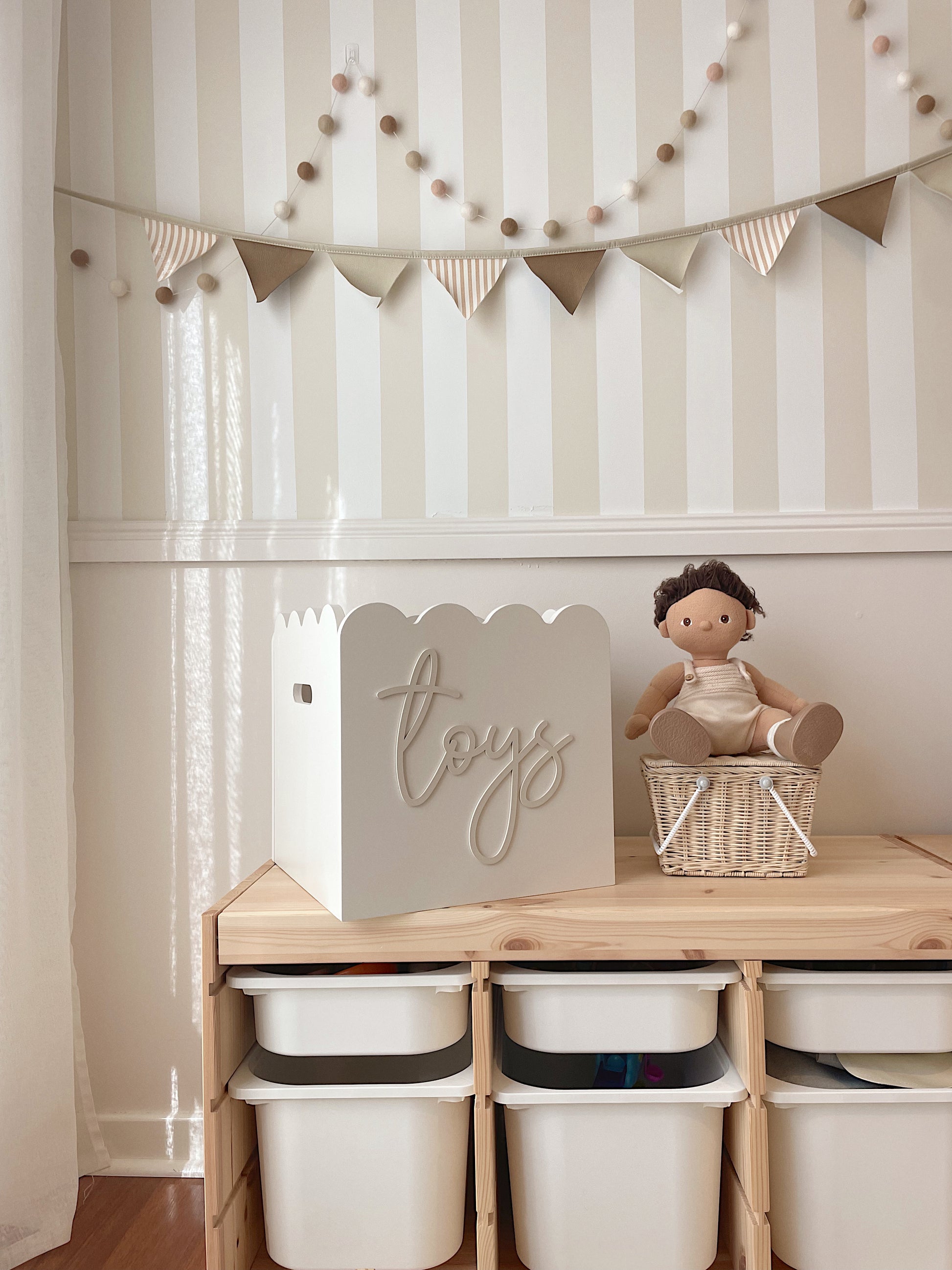 Our toy boxes are carefully handcrafted, which means no two are exactly alike. Slight variations and small imperfections are a natural part of the process — adding to the charm and uniqueness of every piece.
