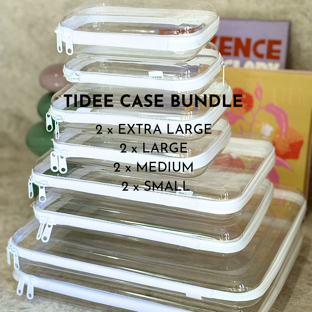 In this pack you will receive 2 x Small, 2 x Medium, 2 x Large, 2 x Extra Large Tidee Cases